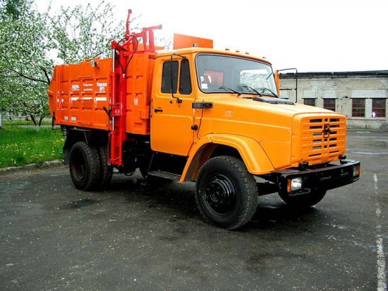 | МКМ-2701 на шасси Зил 432932 Мусоровоз с верхней боковой разгрузкой кузова, с манипулятором Объем кузова полезный- 9,5+- 0,2 м3 Масса спецоборудования-240 0кг Масса мусоровоза полная, кг:-11000 Масса вывозимого мусора, кг : 4500 Количество загружаемых контейнеров объемом 0,8 м3- до 30 Грузоподъемность манипулятора -700 кг, коэффициент уплотнения мусора до2,5 Усиление прессования-14500кгс |